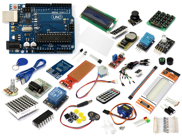 Most Arduino kits come with an Arduino UNO board, USB cable, and a variety of sensors and actuators. You can also buy additional components online or at local electronics stores.
